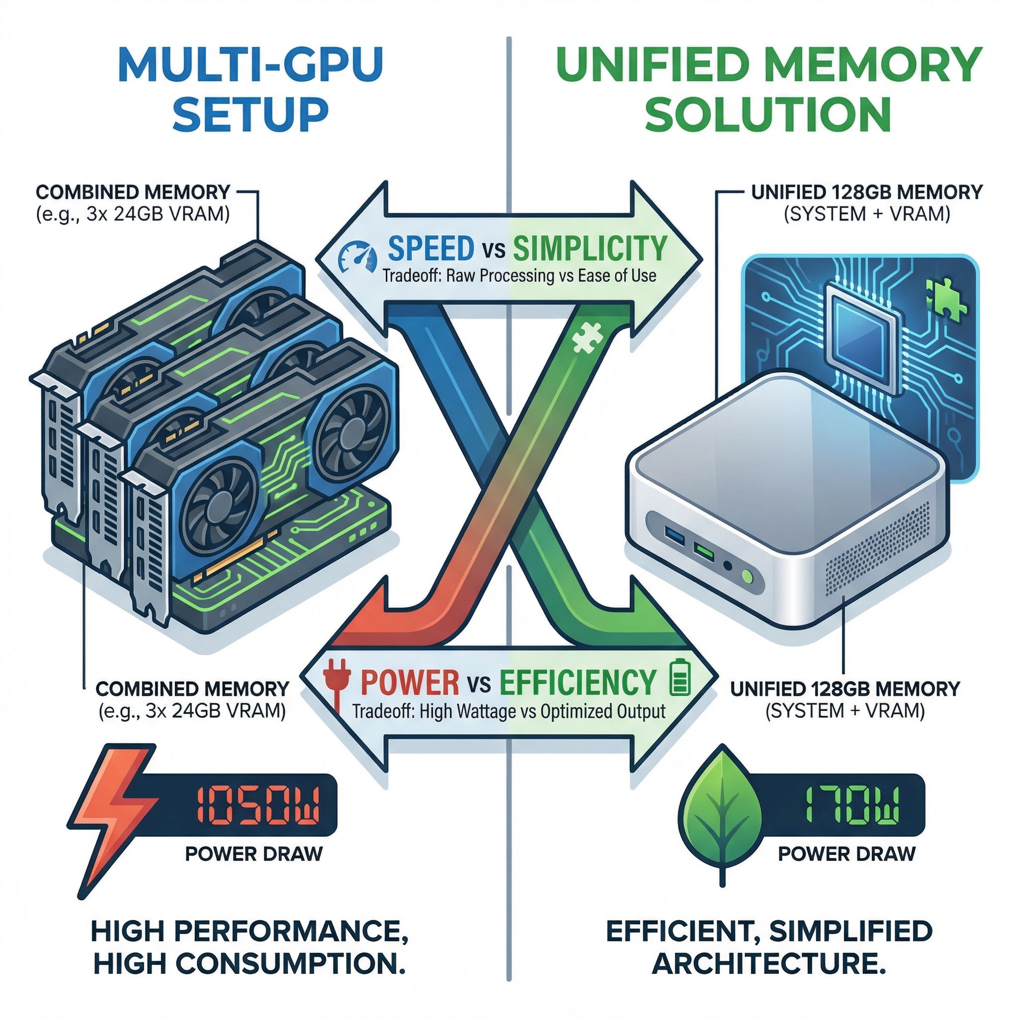 The honest answer isn’t simple, and understanding why requires looking beyond the spec sheet. For certain specific workloads, the DGX Spark offers capabilities you genuinely can’t get elsewhere at this price point. For others, a $1,500 multi-GPU setup or a $2,100 AMD alternative will significantly outperform it. And for many users experimenting with local LLMs, a high-end mini PC like the Minisforum AI X1 Pro or GEEKOM A9 Max can handle 13B-70B models at a fraction of the cost. Understanding which category your needs fall into requires digging past the marketing into the benchmark data, and that data tells a surprising story about what actually matters for local AI work.