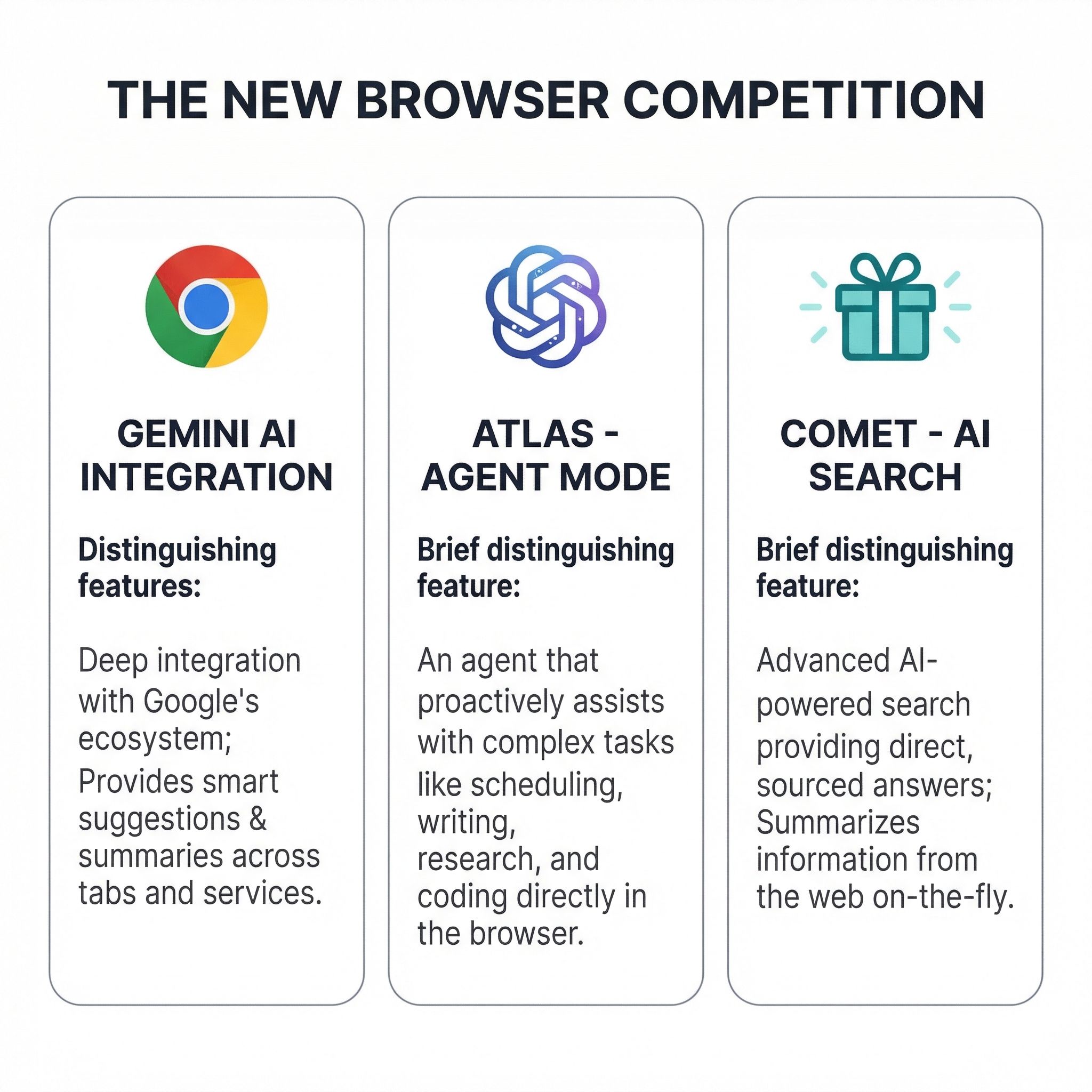 For the better part of a decade, Chrome’s dominance was so complete that “browser competition” felt like a historical curiosity. That changed in late 2025 when two AI companies launched dedicated browsers designed to rethink what a browser does. OpenAI released ChatGPT Atlas in October 2025, a macOS browser with an “Agent Mode” that can autonomously navigate the web, conduct research, and complete tasks on your behalf. That same month, Perplexity made its Comet browser free worldwide, built on Chromium but with an AI search engine woven into every tab.