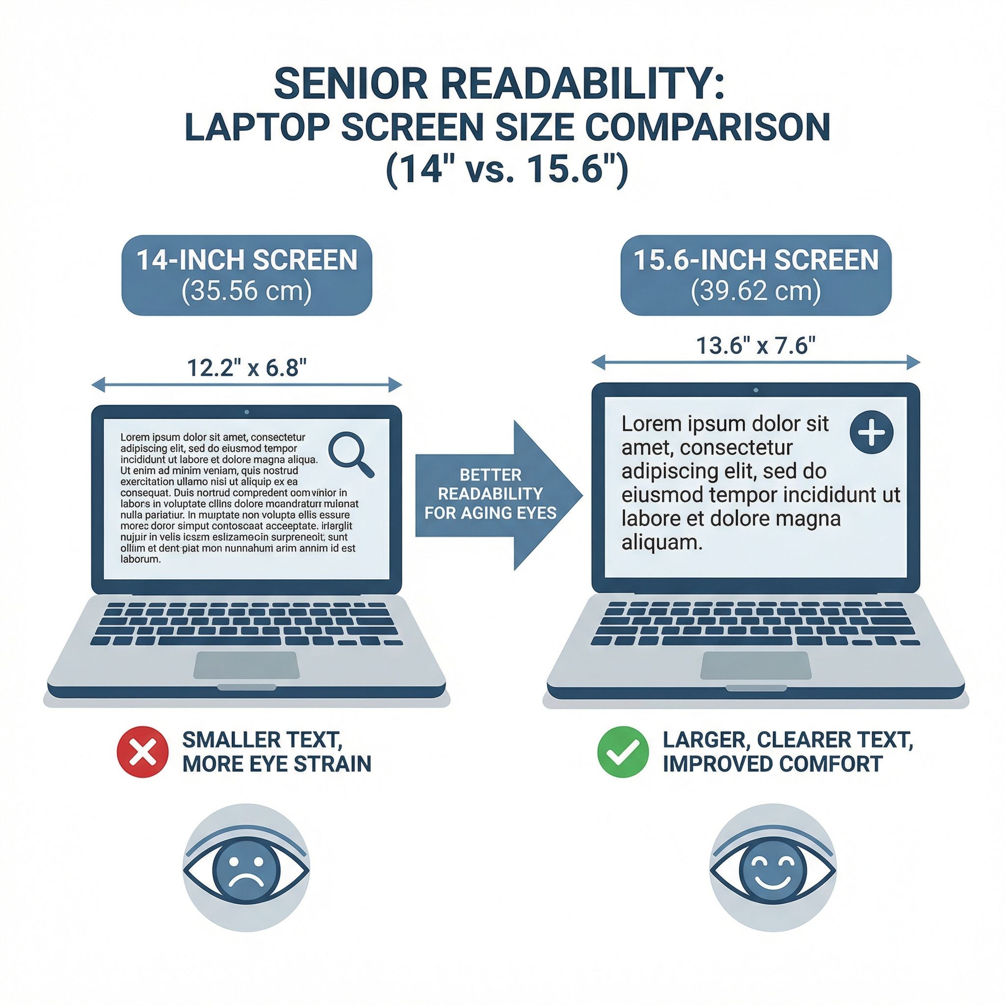 Screen size matters more than processor speed for elderly users. While tech reviewers obsess over benchmark scores, seniors benefit most from displays large enough to see comfortably without straining or leaning forward. A 15.6-inch screen provides generous real estate for reading email, watching video calls, and browsing websites without constantly zooming. The larger form factor also means a full-size keyboard with a number pad—important for users who learned to type on desktop keyboards and find cramped laptop layouts disorienting.