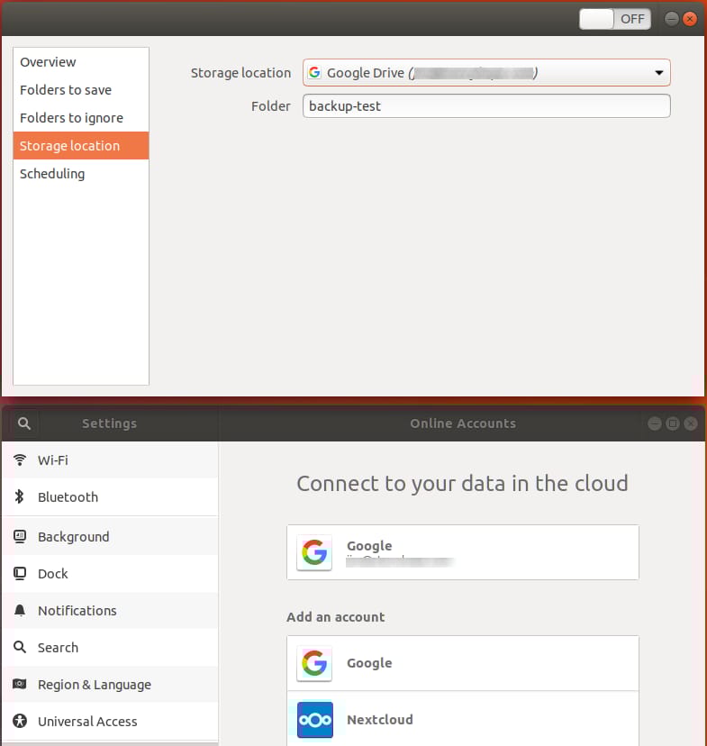 The default backup solution in Ubuntu is Deja Dup (aka “Backups”). Deja Dup is a simple, easy to use program, but it has all the necessary features needed to backup online. Files are compressed and securely encrypted (if you give it a password) before leaving your computer. You can save backups to local folders, external drives, and standard servers using protocols like FTP, SSH, Windows shares, WebDAV, NFS, and even AppleTalk. Backups are incremental, which means that after the first backup, the program only has to send changes to the server.