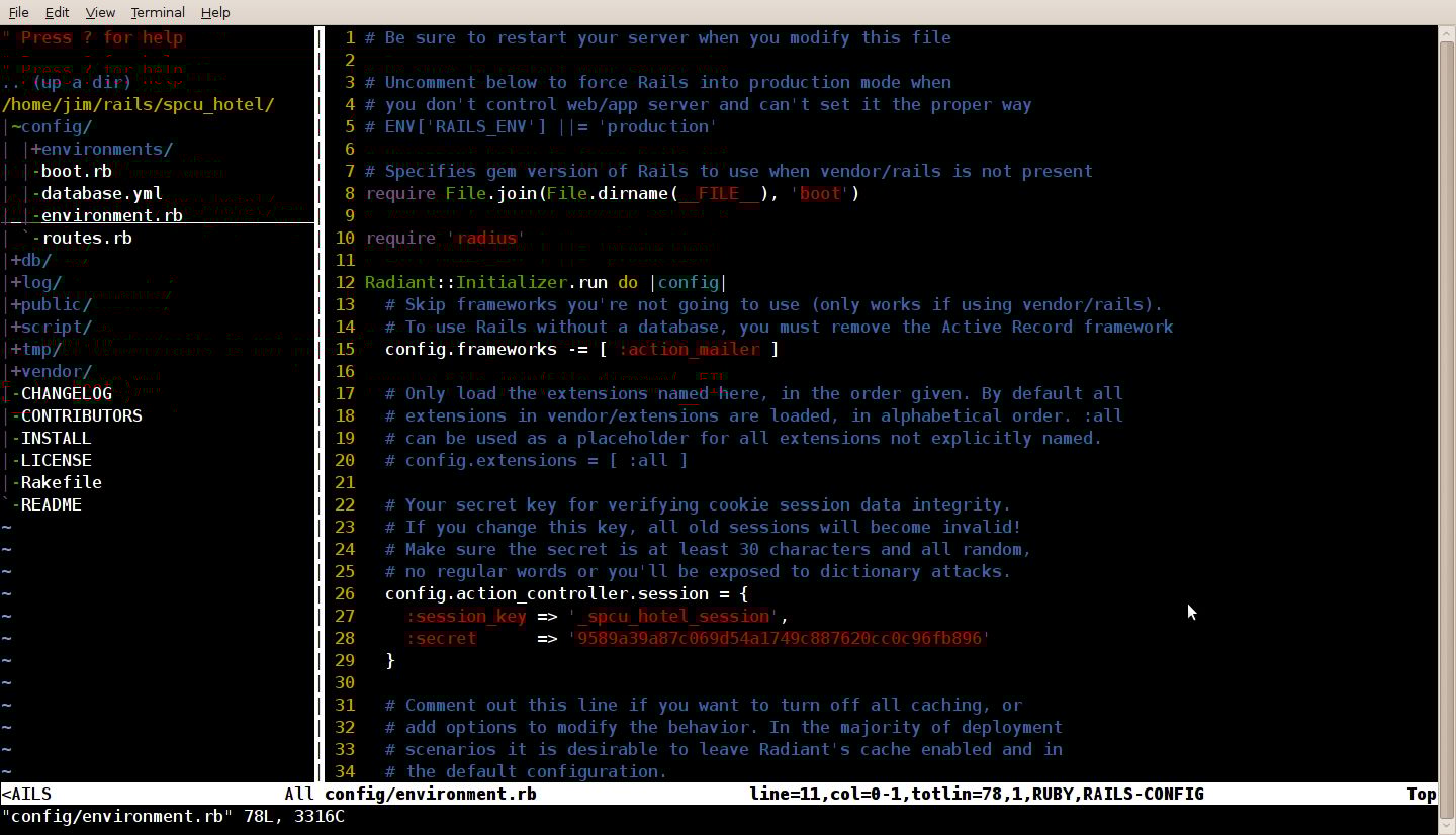 I still spend a lot of time working in a text editor. I got hooked on using TextMate for my web and Ruby on Rails work. It seems like all the cool Rails developers use TextMate exclusively, but we’re starting to see a shift from that. I see more and more people talking about using Vim for their coding projects.