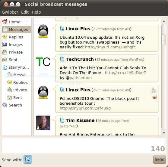 Gwibber is a microblogging client with support for Twitter, Identi.ca, StatusNet, Facebook, Flickr, Digg, FriendFeed, and Qaiku. You can use gwibber to interact with all of your social networks and view them from within one window on your desktop. We found gwibber very useful for following multiple social networks and accounts simultaneously. Gwibber provides a rich experience and you might even noticed things that you missed when relying on the social networking websites alone.