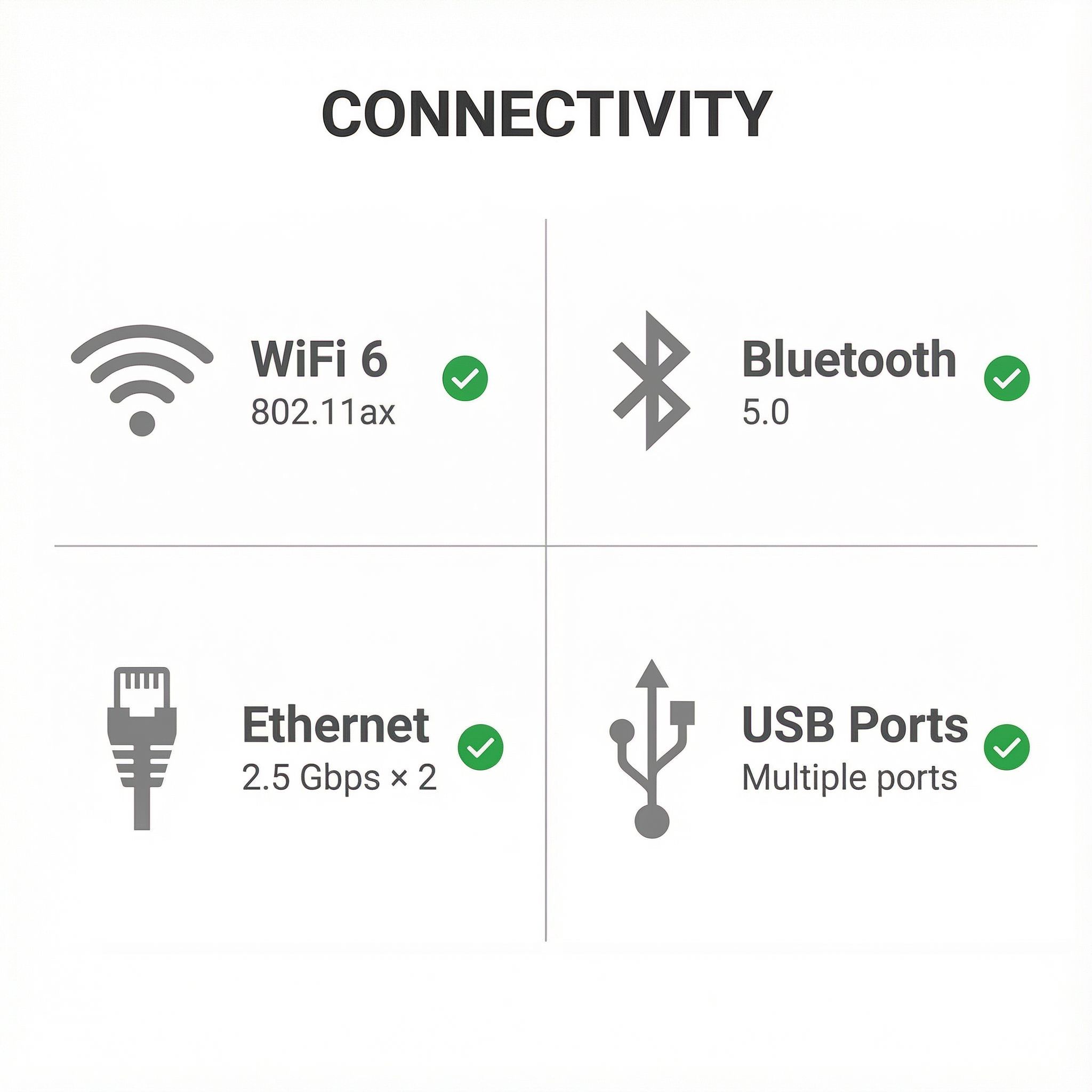 | Ethernet | 2 Ethernet ports at 2.5 Gbps |